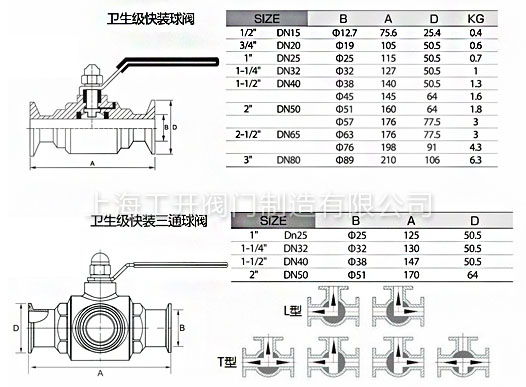 | 衛(wèi)生級(jí)不銹鋼快裝球閥、衛(wèi)生級(jí)快裝直通球閥、衛(wèi)生級(jí)快裝三通球閥(L/T) | |||