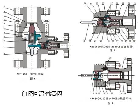 根據(jù)主流量不同,再循環(huán)閥的主閥閥瓣將被確定在某一個位置上,主路止回閥的閥桿通過一杠桿,將主閥瓣動作傳遞至旁路,旁路系統(tǒng)控制通過旁路的流量同時將壓力減至出口所需值,當(dāng)主閥瓣回到閥座關(guān)閉狀態(tài)時,所有流量通過旁路(回流),當(dāng)主閥瓣上升到頂端位置時,旁路則完全關(guān)閉,所有泵的流量流向工藝系統(tǒng)。