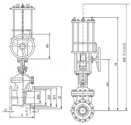 Z641H氣動閘閥外形結(jié)構(gòu)尺寸