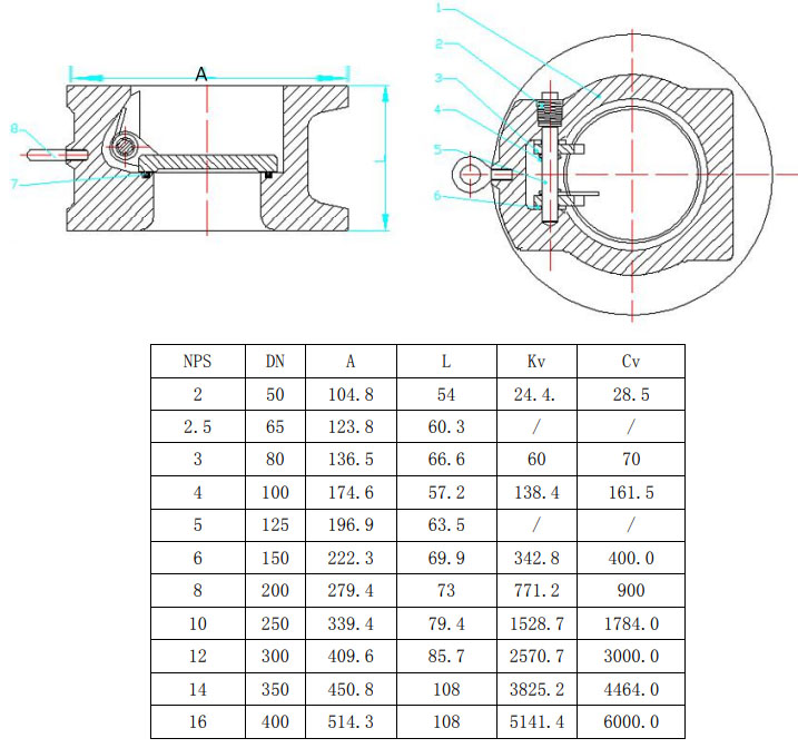 鑄鐵單板對(duì)夾式止回閥主要外形結(jié)構(gòu)尺寸