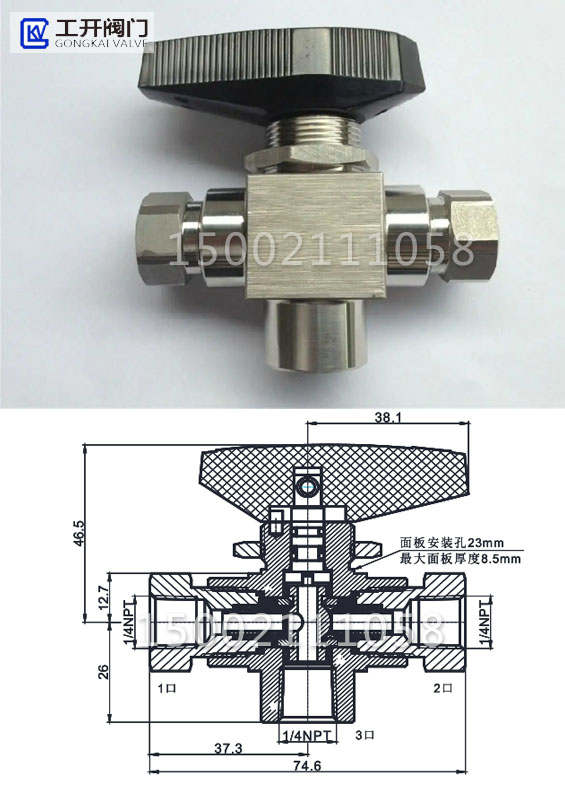 不銹鋼高壓三通球閥,加氣槍閥耐壓6000PSI ,耐溫-40 + 160 ,不銹鋼材質(zhì).結(jié)構(gòu)尺寸如下: