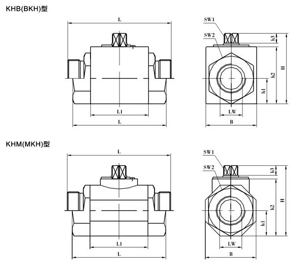 高壓球閥-KHB、BKH、KHM、MKH外形結(jié)構(gòu)尺寸
