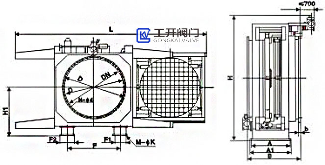 KF941X-2.5C電動敞開式插板閥|敞開式盲板閥外形尺寸和結(jié)構(gòu)圖