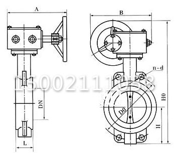 D371X-16P渦輪對夾式不銹鋼蝶閥主要零外形及連接尺寸