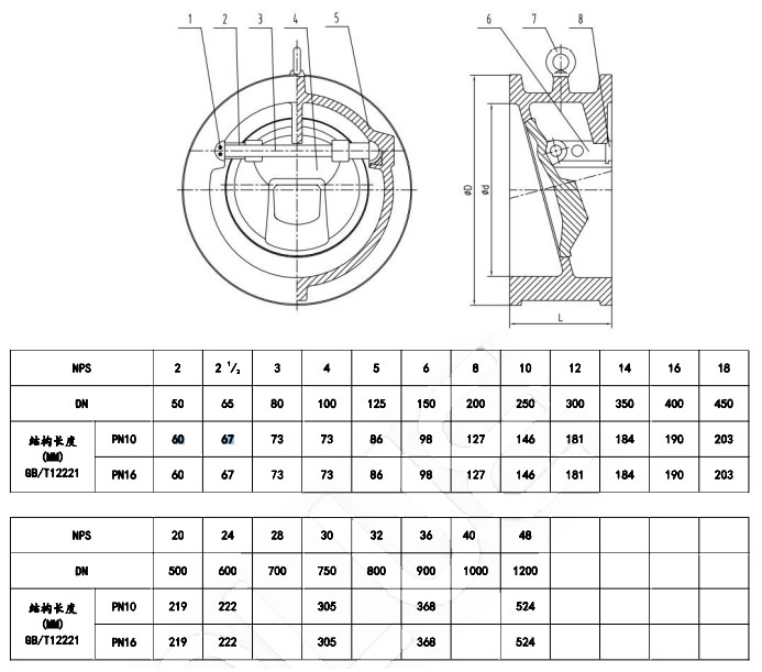 不銹鋼單板對夾式止回閥主要外形結構尺寸