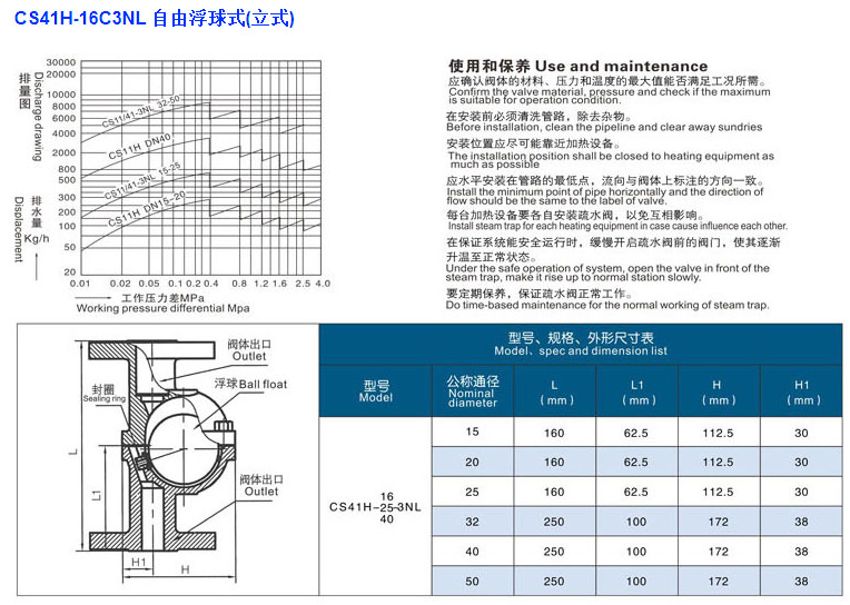 立式自由浮球式蒸汽疏水閥 按連接方式不同分為兩種型號:CS11H-16C-3NL(內螺紋式)、CS41H-16C-3NL(法蘭式)