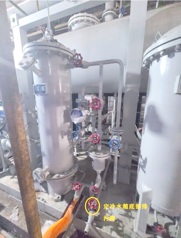 定冷水箱的進水和底部排污操作
