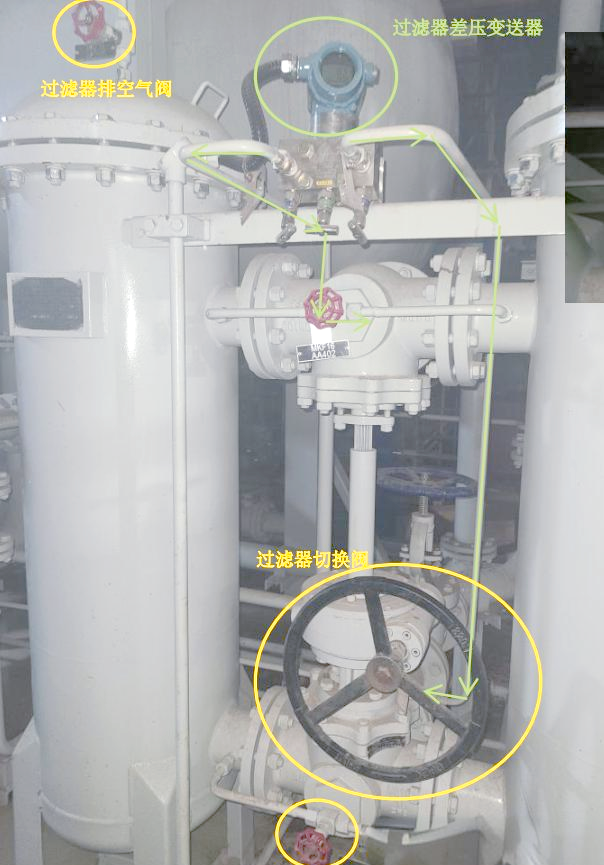 過濾器受污染的程度可以通過其兩端的壓差變送器進行監(jiān)測。一旦過濾器兩端的壓差達到預設的閾值,壓差變送器會觸發(fā)“過濾器壓差高”的報警信號。在接收到此信號后,應立即啟動備用過濾器,同時對堵塞的過濾器濾芯進行清理或更換。