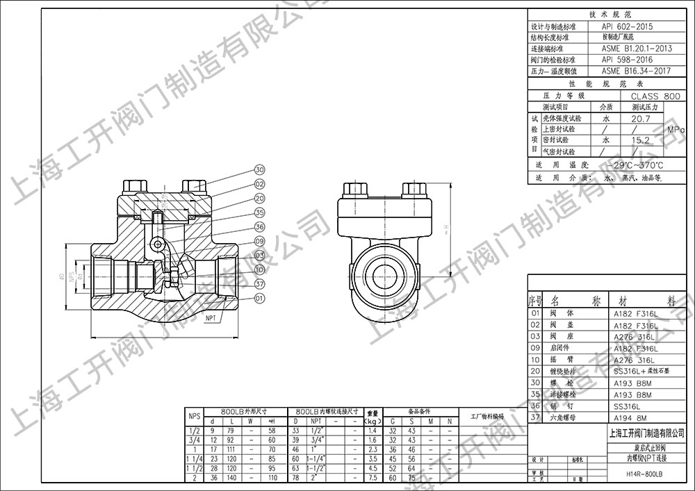 鍛鋼旋啟式止回閥H14R-800LB圖紙