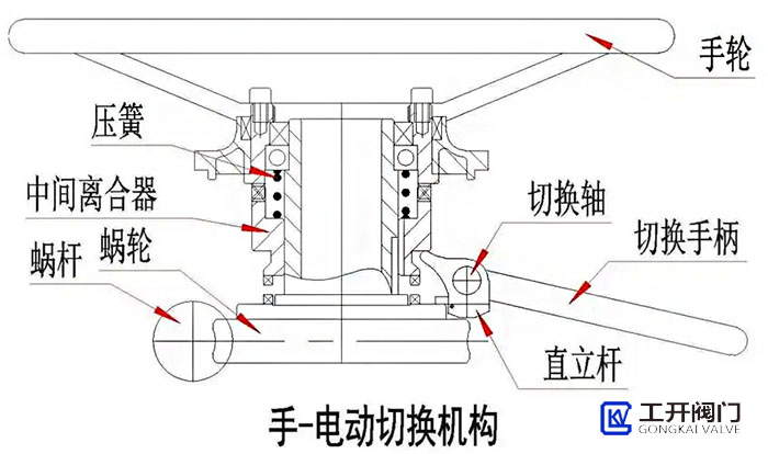 手動操作電動執(zhí)行器的裝置,通常由手動機構、離合器和齒輪等部分組成。其中,手動機構部分是用來手動切換的,離合器則用來連接或者斷開電機和傳動部分之間的機械聯(lián)系,齒輪則起到傳遞力量的作用。