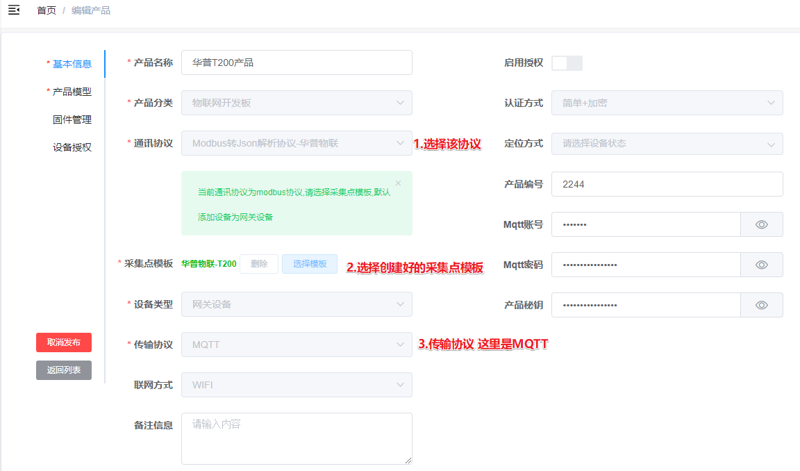 Modbus slave模擬子設(shè)備接入DTU設(shè)備時(shí)平臺(tái)配置