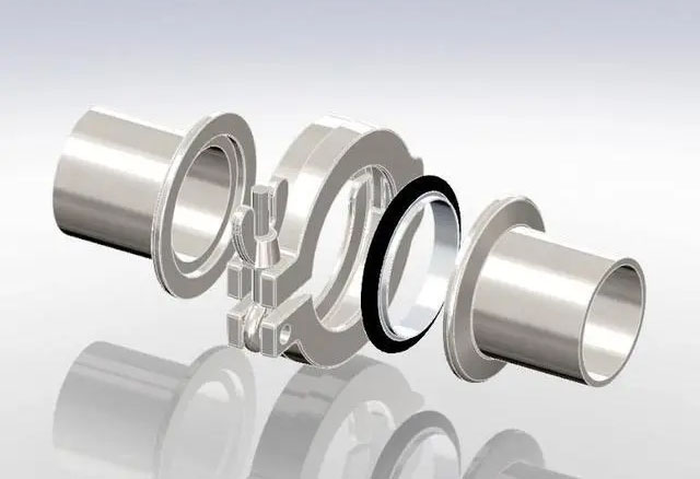 1)ISO-K 真空接頭通常由法蘭(flang)、法蘭爪(clamp)、密封圈(O-Ring)、中心定位環(huán) (centering ring) 組成。
