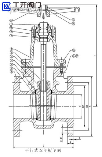 二、平行式閘閥通常采用雙閘板結(jié)構(gòu)(圖2c);特殊用途的閘閥,如長(zhǎng)距離輸油、輸氣的管道上用的大口徑閘閥因清掃閥門和管道的需要而采用單閘板結(jié)構(gòu)(圖2d)。