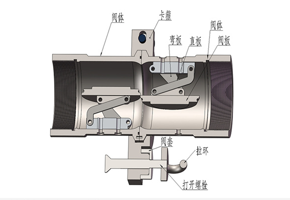 拉斷閥由兩個單向閥、夾緊機(jī)構(gòu)、拉斷機(jī)構(gòu)三個部分組成。
