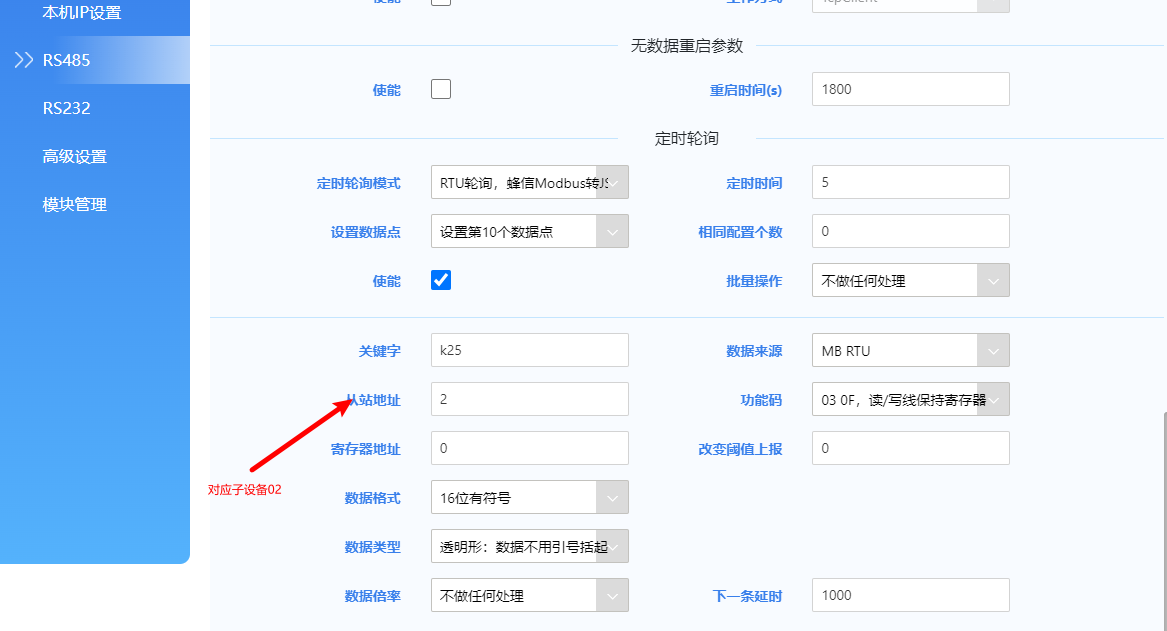 從站地址:需要與云平臺采集點模板的從機地址一致